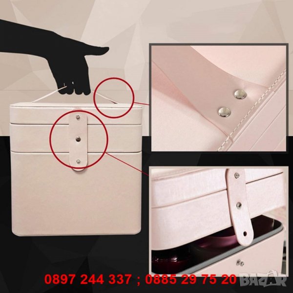 Несесерът се състои от едно основно отделение, както и 4 рафтчета на специални механизми. Те са перфектни за подреждане на червила, спирали, четки и други дреболии, които използвате докато се гримирате.