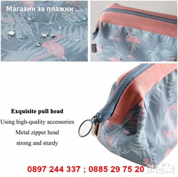 Дамска козметична чанта, несесер за гримове и тоалетни принадлежности с 2 странични отделения. Побира наистина много козметика. Подходяща за използване и като несесер за четки за грим. В него може да съхранявате моливи, маски, червила, коректори и други дребни предмети. Чантичката е изработена от здрава непромокаема полиестерна материя.