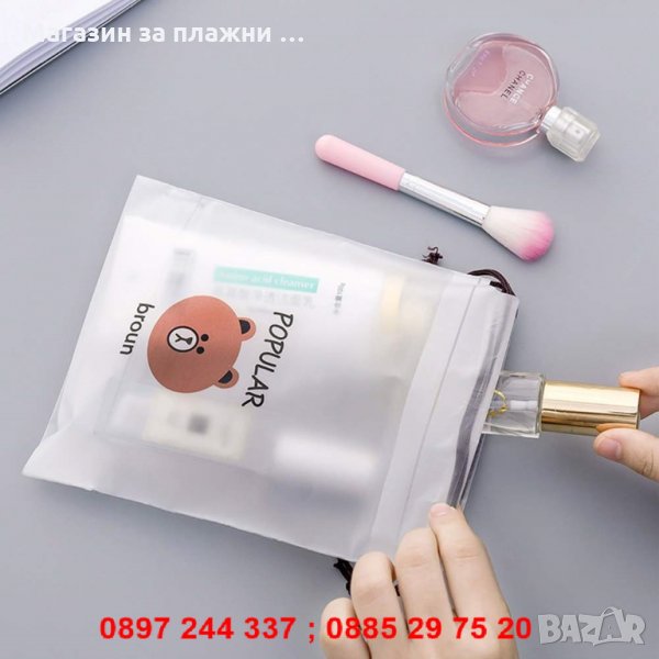 Прозрачни пликове за козметика при пътуване с връзки за затвяряне - с мечета