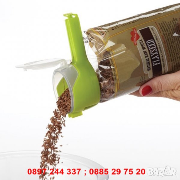 Уникална джаджа! Тази щипка запечатва здраво вече отворените пликове със сол, захар, ориз и други сухи храни, като не е нужно да я откопчавате всеки път когато искате да отсипете от плика! Просто отворете капачката и отсипете нужното количество, без да разсипвате и разпилявате продуктите. Страхотен кухненски помощник, който със сигурност ще е полезен за всяко домакинство.