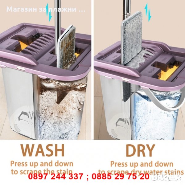 Край на мокрите следи! Измиващ и полиращ моп в едно!