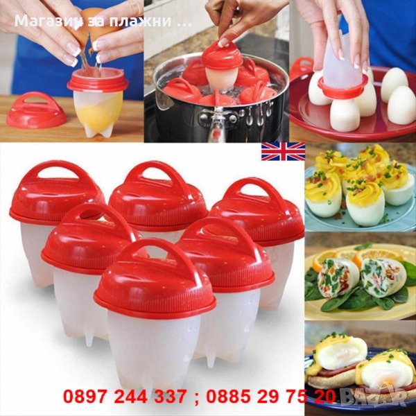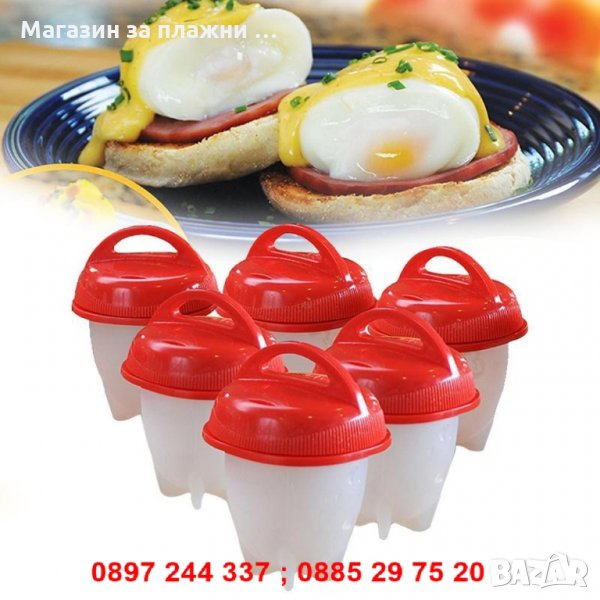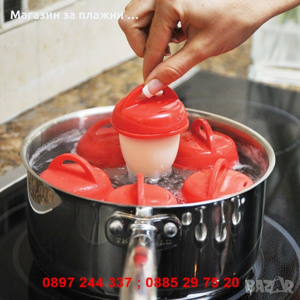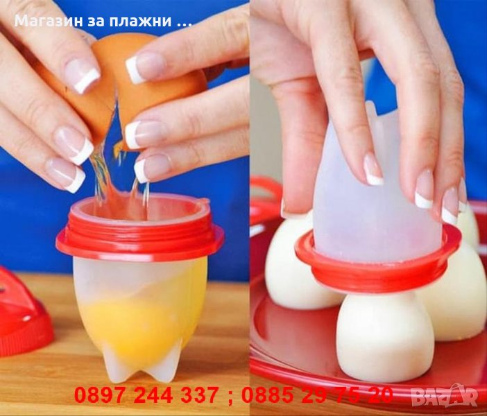 Комплект 6 броя силиконови кошнички за варене на яйца, с които никога повече не белете черупките на яйцата. Невероятно приспособление, благодарение на което ще приготвяте любимите си варени яйца бързо, лесно и най-вече – без черупки! Малките кошнички са специално разработени така, че яйцето се сварява перфектно, все едно в собствената си черупка! Само счупете яйчицето в кошничката, завийте капачето и пуснете във врящата вода. И хоп – имате перфектно сварени яйца, според вкуса на всеки. Чисто, бързо и много лесно. Можете да експериментирате, да добавяте зеленчуци, подправки и други нещица, за да получите малки, топчести омлети. Изненадайте гостите си или семейството си!