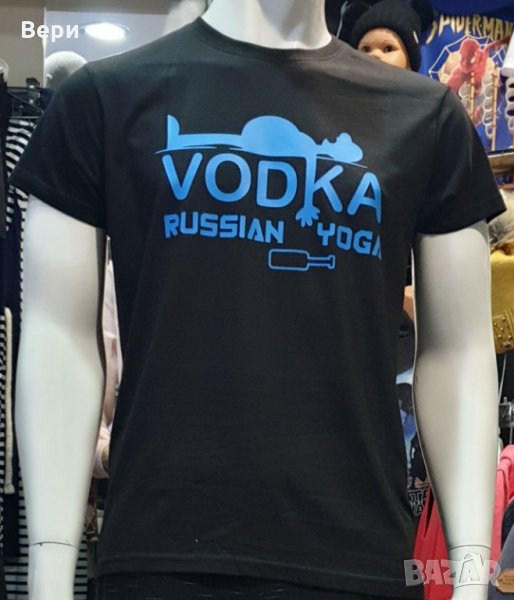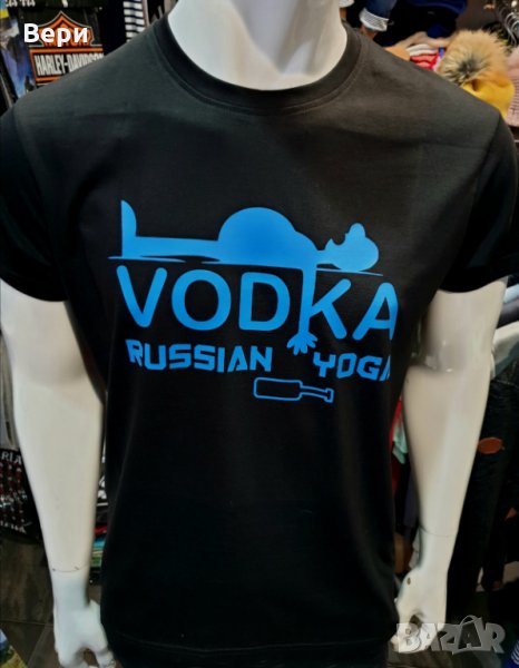 Страхотна нова забавна мъжка тениска в черен цвят с трансферен печат VODKA Russian yoga. Тениската е изработена в България под марката PRINTEX от висококачествен 100% пениран памук на 170 гр./м², който запазва цялостта на материята и наситеността на цветовете. С удобна кройка, тениската е свободна и позволява максимален комфорт при носене. Професионално изработен висококачествен трансферен печат, устойчив на пране с години. Тениската може да се пере при температура до 40 градуса. Спокойно можем да гарантираме за качеството на изработката и ярките цветове на дизайна.