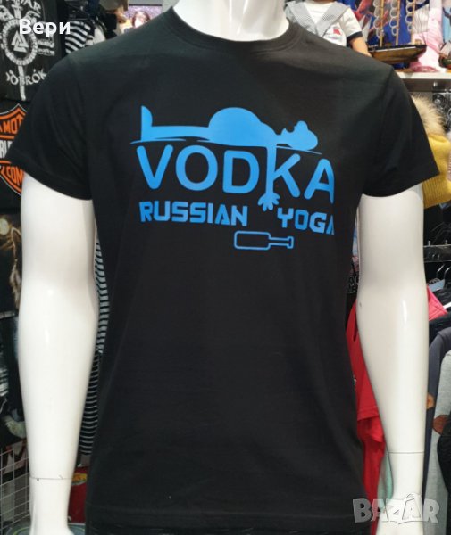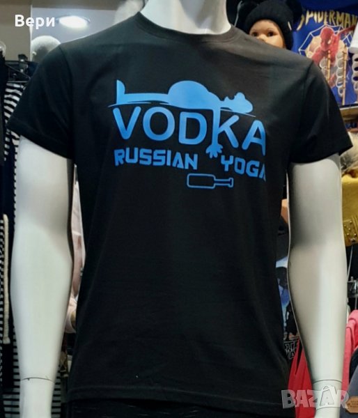 Нова мъжка забавна тениска с трансферен печат VODKA Russian yoga, алкохол, Русия