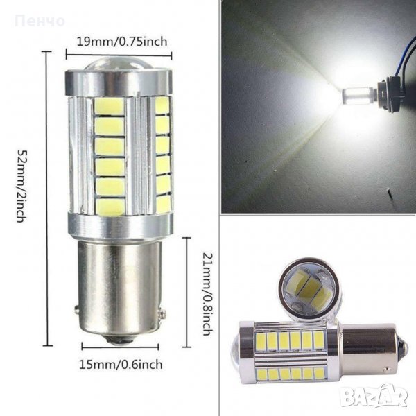 2 бр BA15S 1157 стоп габарит светлини габарити крушки супер ярка бяла светлина кола спирачка 33 лед