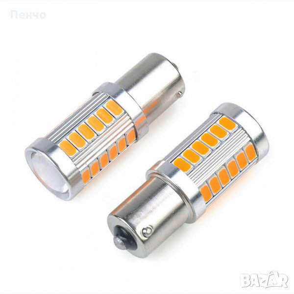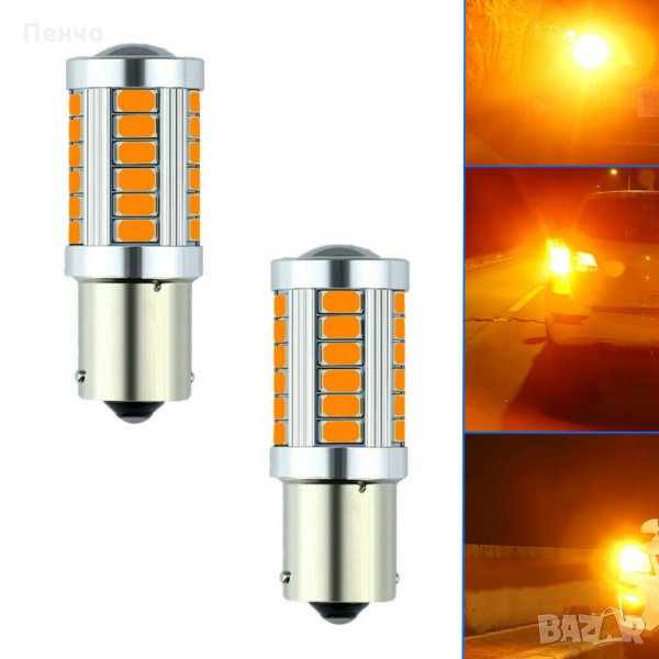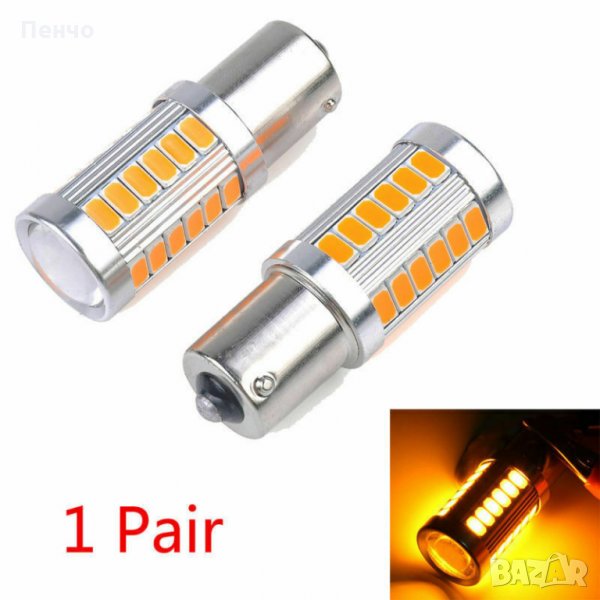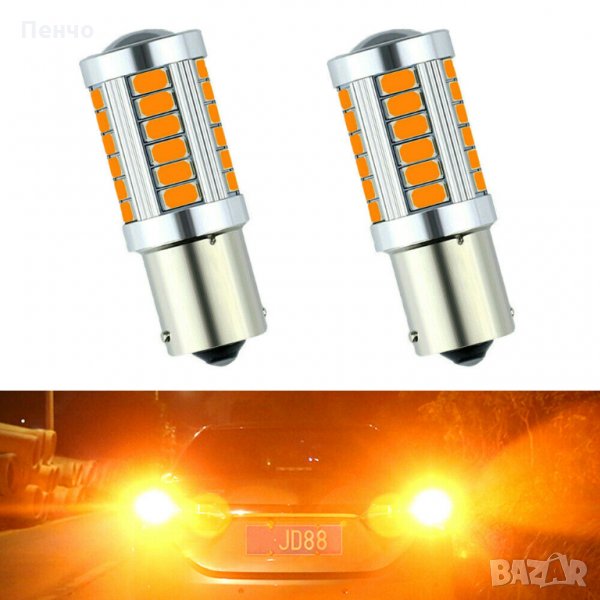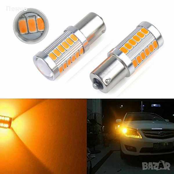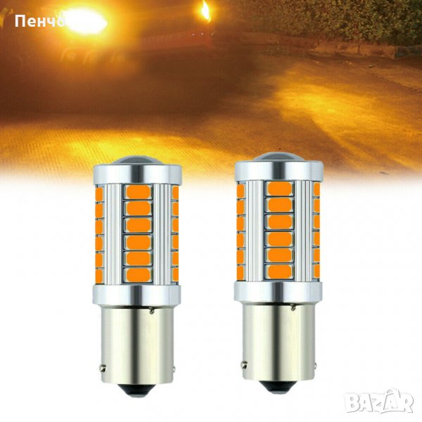 2 бр BA15S стоп габарит светлини габарити крушки супер ярка жълта светлина кола спирачка 33 лед SMD
