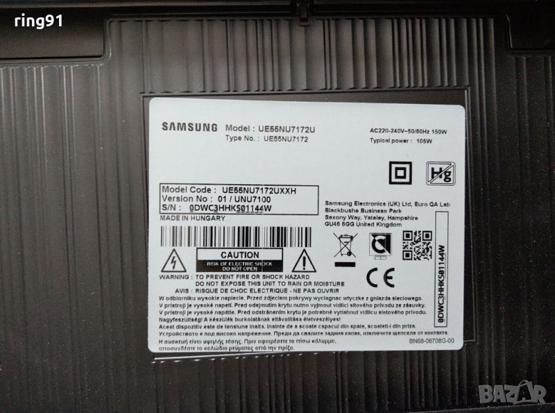 Захранване - BN44-00932B TV Samsung UE55NU7172U → Обява 28276737