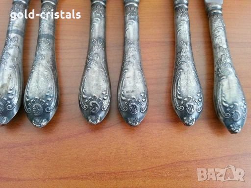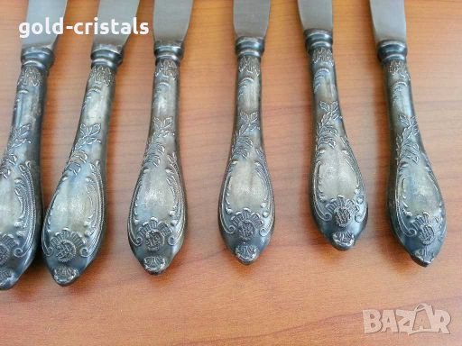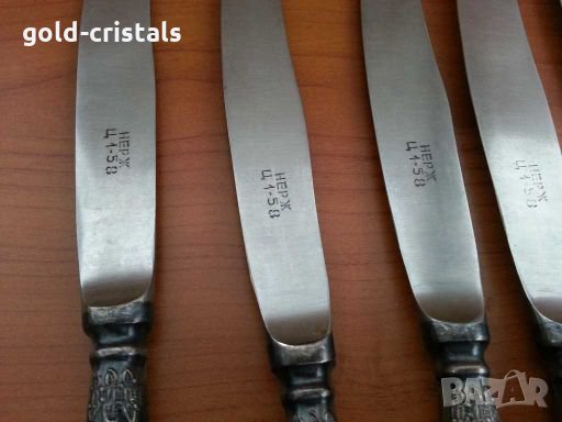 Комплект руски прибори ножове 6 бр -79лв вилици 21см -79лв лъжици 21см -79лв маркирани мнц руско сребро съветски ссср сервиз комплект сет лот ретро арт декор винтидж колекция стари има и вилици изключителна рядкост на дължината вилици 18см-149лв ножове 21см-149лв стари антикварни предмети обзавеждане за дома и семейството подходящи за подарък за ценители и колекционери