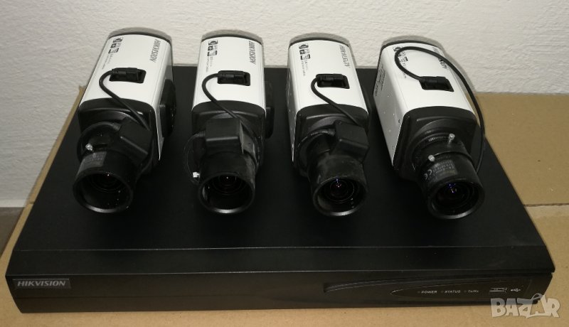 4 броя корпусна цветна IP камера 2 MP Hikvision DS-2CD853F-E + обектив