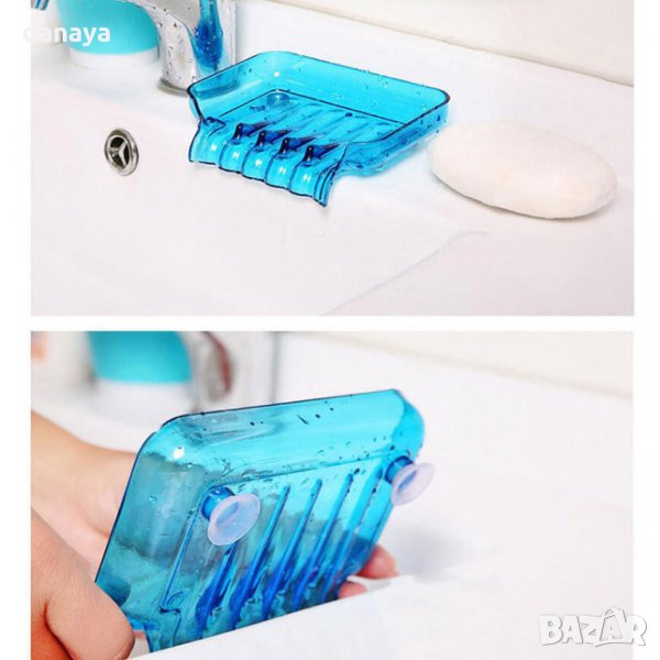 Пластмасова сапунерка за мивка с вакуум. Поставка за гъба или сапун, която има улеи за отцеждане на водата директно в мивката и това позволява сапуна да изсъхне бързо, за да се ползва по-дълго време. Поставката е идеална и за кухненска гъбичка за чинии. Закрепя се с помощта на вакуумни вендузи. Практичен аксесоар за кухненска мивка или баня. Предлага се в различни цветове.