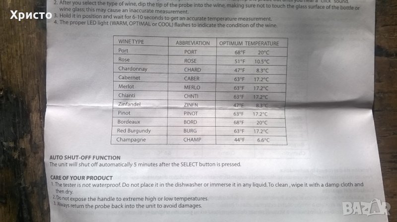 вино тестер електронен за оптимална температура за консумация уникат