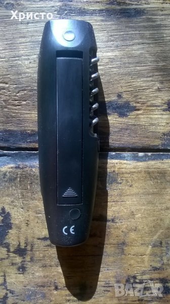 Отстрани има тирбушон и работи с 2 броя батерии ААА по 1,5 волта.