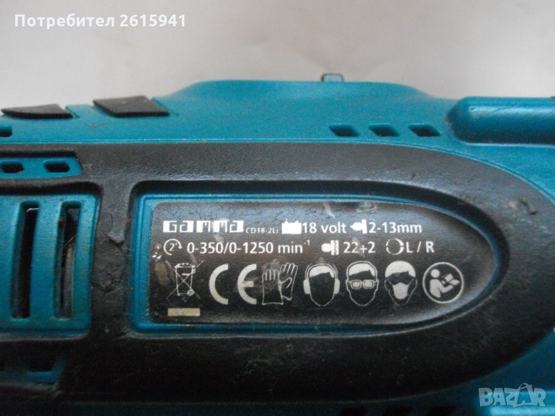 Почти ново силно и мощно,боди-само тяло,за винтоверт,профи модел на Гама,Li-ion-литий-йон технология,с метални части вътре,издържащи на по-интензивни натоварвания. Марка и модел-Gamma CD18-2Li.Бодито е оригинално профи холандско производство 2010г,упоменато с маркировка. Много запазен външен вид и отлично техническо състояние.Работи много добре-силно,мощно,бързо и ефективно при работа.Мощност на мотора-18 волта,2 скорости,22 степени на натягане,отделно функция пробив и отделна функция удар-символ чук.Патронник-голям масивен,самонатягащ 2-13мм.Обороти-0-350 и 0-1250 в минута.Плавен старт на шпиндела,реверс смяна посока,вграден лед фенер-просветка,вграден ел.графичен дисплей ниво показател заряд.Гумирани нехлъзгащи се,противоударни покрития на дръжката и част от корпуса.Бодито е за батерии тип шейна,клик-клик,с приплъзване.Цената е за 1 брой боди- 99 лв.