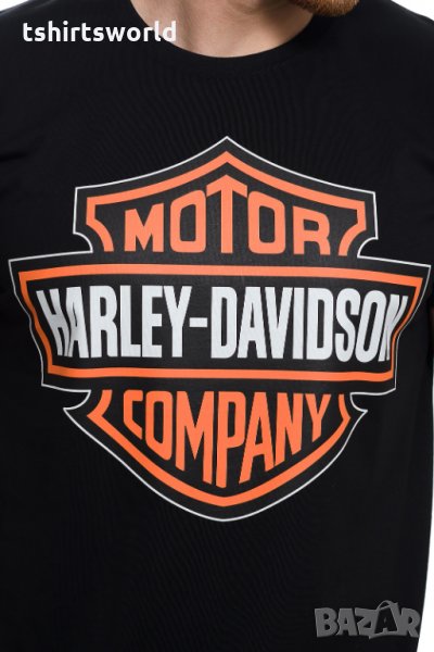 Страхотна нова мъжка тениска в черен цвят с трансферен печат HARLEY DAVIDSON, MOTOR. Тениската е изработена в България под марката PRINTEX от висококачествен 100% пениран памук на 170 гр./м², който запазва цялостта на материята и наситеността на цветовете. С удобна кройка, тениската е свободна и позволява максимален комфорт при носене. Професионално изработен висококачествен трансферен печат, устойчив на пране с години. Тениската може да се пере при температура до 40 градуса. Спокойно можем да гарантираме за качеството на изработката и ярките цветове на дизайна.