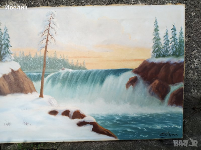 картина-пейзаж.масло на платно.подписана,датирана, на дървена подрамка с размери 45см/69см.