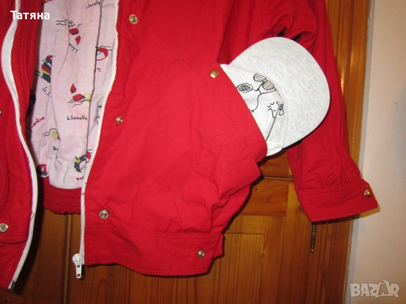 СНИМКИ 9-13;100% ПАМУК ;дълж.-60см :раменна обиколка -120 ;ръкав –55см :ханш –100см;/може да се коригира с ТИК-ТАК копчета и ластика в долния край на якето; като ново е,/ОБЛИЧАНО Е САМО ЕДИН ПЪТ; МОЖЕ ДА СЕ ПОЛЗВА пролет:лято:есен;