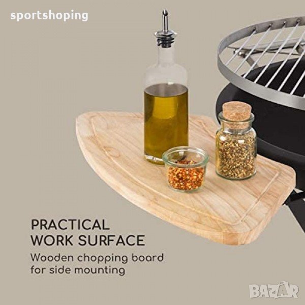 С диаметър на купата от 58 см, Blumfeldt Caruso предлага достатъчно място за голям огън направен от трупи, въглища или барбекю брикети. Трите екстра дълги крака осигуряват идеалната работна височина и умело повдигат огнището, което придава повече фокус на блещукащите пламъци. Horiflex Swivel грилът - отстраняемата въртяща се решетка на грила изработена от неръждаема стомана с диаметър от 64 см - улеснява социализирането покрай огъня за семейството, приятелите или гостите.
