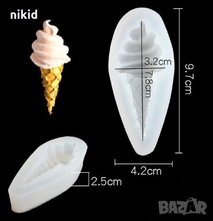 Фунийка сладолед с крем силиконов молд форма за декорация торта фондан шоколад гипс → Обява 28300933