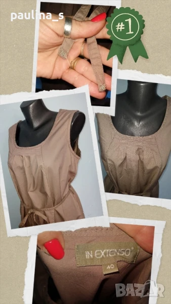 2️⃣ L / 2XL - Рокля в цвят Nude "In extenso". Цената е крайна 39,99лв. Една бройка. Нова рокля във винтидж стил. Материята е памук, с лека еластичност. Моделът е ретро с колан и силует пясъчен часовник. Декорациите около бието и на колана са с дискретни мъниста. Изключително качествена и изискана дреха.