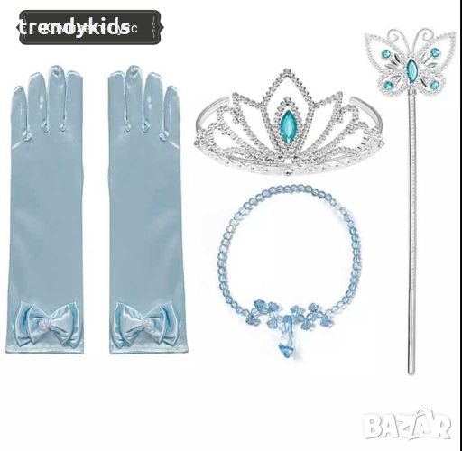 КОМПЛЕКТ АКСЕСОАРИ ЛУКС- КОРОНА, ЖЕЗЪЛ , РЪКАВИЦИ С ПАНДЕЛКИ И КОЛИЕ С КРИСТАЛНА ПАНТОВКА- 26.00 ЛВ.