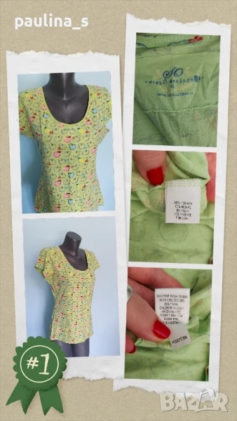 2️⃣. Колаж / M / 2XL - Винтидж! Еластична брандова блузка с поло яка "Support" earth and nature. Цената е 14,99лв / 7,5 евро . Много качествена еластична сива блузка с поло яка и къс ръкав. Материята е памук и ликра, много еластична и покрива няколко размера, не е нова, но е без дефекти. Моделът стандартен, подходящ за всичко.