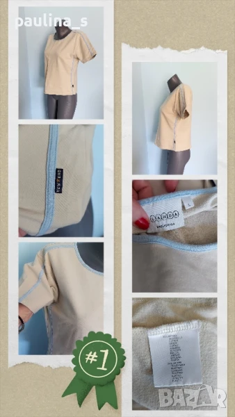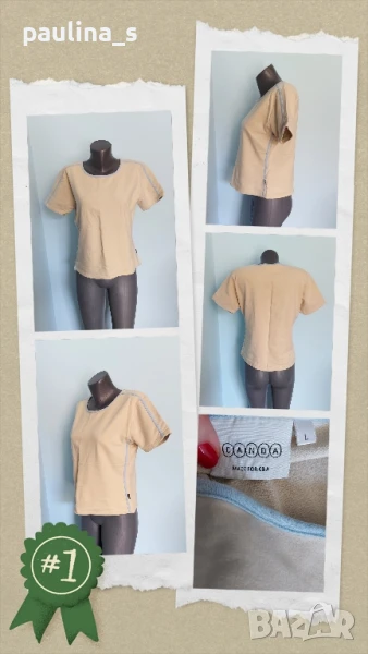 3️⃣. Колаж / XL / 3XL - Ватирана еластична тениска "CANDA" by C&A. Цената е крайна 14,99лв / 7,5 евро. Ватирана еластична тениска с декориращи шнурове. Материята е памук и ликра, много еластична и покрива няколко размера, плътна и приятна за носене. Цветът е неутрален, подхожда на всичко.