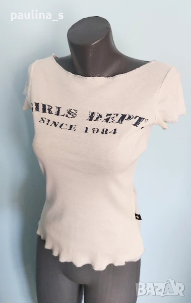 4️⃣. Колаж / S / 2XL - "G Star raw". Цената е крайна 29,99лв / 15 евро. ВИНТИДЖ, РЯДКА НАХОДКА! 1989г. "Just G star raw". Памучна блуза с щампа, завършва на син оверлог. Моделът е с лодка деколте, втален, брандирана. В отлично състояние е, не е чисто нова, но е без дефекти, топчета, скъсано или други подобни.