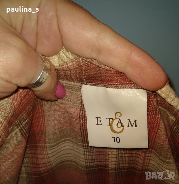 Панталон в каре с регулируема талия. Материята е памук и лен, прохладна и хипоалергична. Без забележки.
