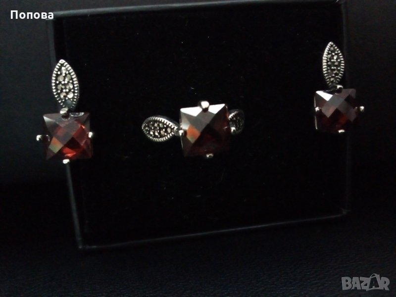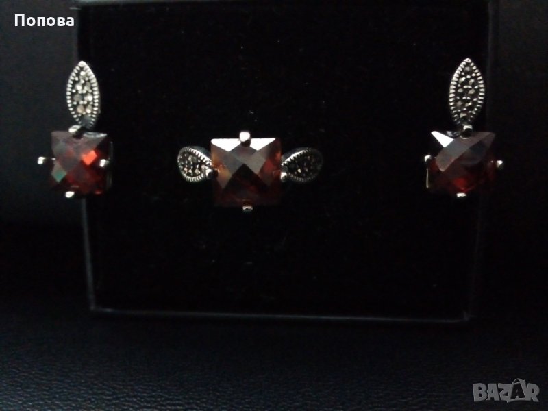 Сребърен комплект  с гранат и марказити/обеци и пръстен /, снимка 1 - Бижутерийни комплекти - 28318555 Сребърен комплект  с гранат и марказити/обеци и пръстен /, снимка 2 - Бижутерийни комплекти - 28318555 Сребърен комплект  с гранат и марказити/обеци и пръстен /, снимка 3 - Бижутерийни комплекти - 28318555 Сребърен комплект  с гранат и марказити/обеци и пръстен /, снимка 4 - Бижутерийни комплекти - 28318555 1/4