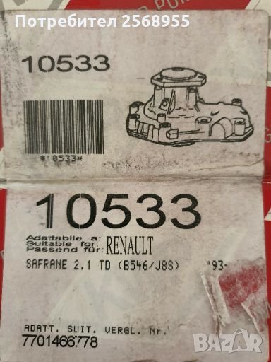 KWP 10533 Водна помпа RENAULT Safrane 2.1 dT, 88 K.C, 1993 - 1996 / OE 7701466778 → Обява 28326829