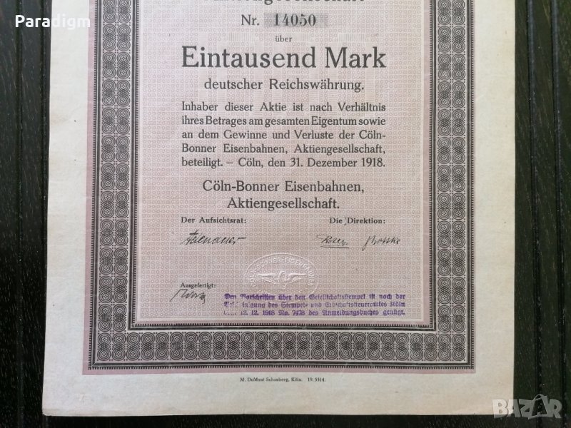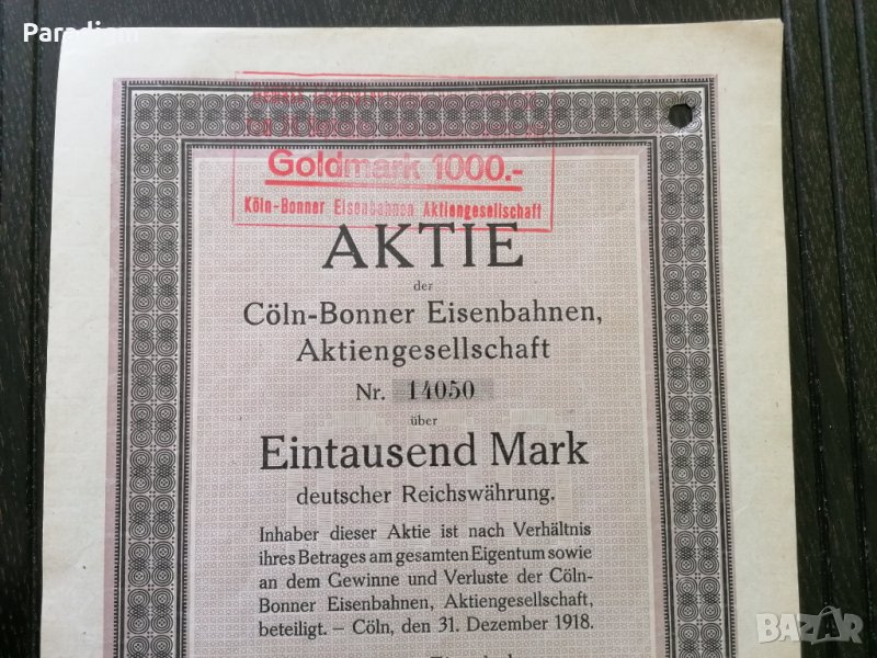 Райх облигация от 1918г. върху номинал от 1000 златни марки