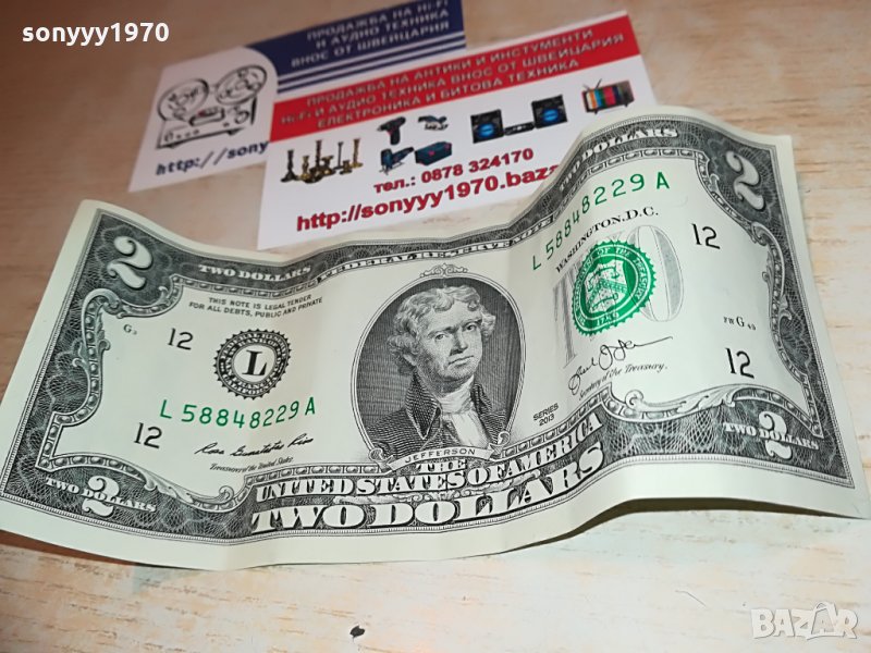 за колекция или ползване-рядка банкнота от 2 долара за 45 лева-от днес 28.02.22г пращаме със спиди или еконт с преглед и тест след превод на капаро за куриерската услуга поради зачестили некоректни потребители-поръчки само тук в саита! по телефона и със смс не! краини цени! бартери не правиме! всеки ден нови неща-още 2-3 наши обяви тук