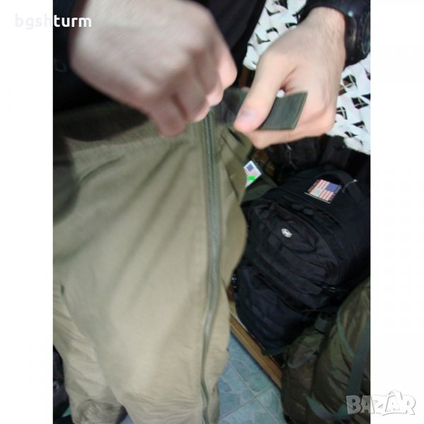 се регулира с велкро колани.По цялата странична дължина на панталона