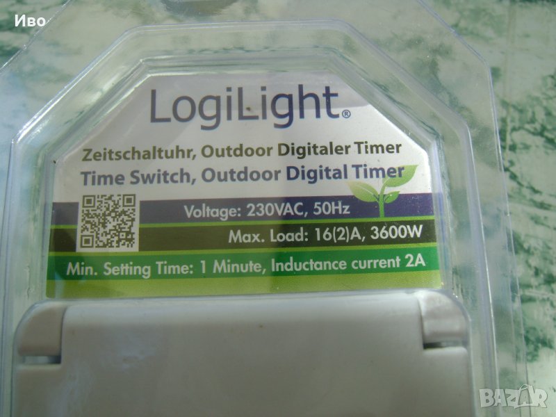 LogiLight - Дигитален Taймер за контакт с капак indoor / outdoor 3600W , 290гр , Чисто нови ,