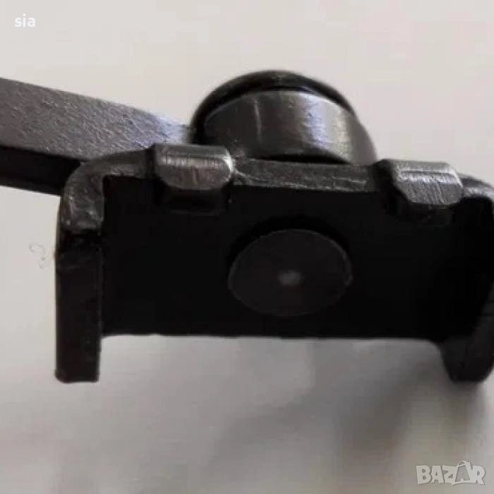 - Механизмът за заключване държи скобата отворена, освобождавайки ръцете за премахване или инсталиране на маркуча.
