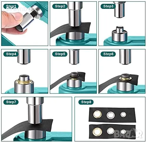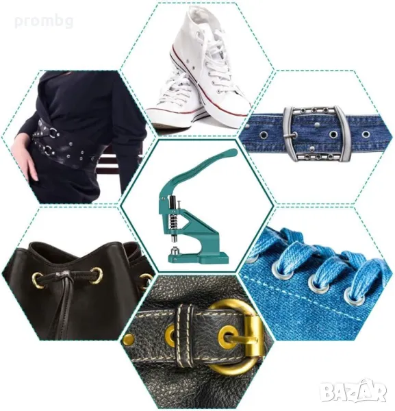 Преса за капси, перфоратор, кожарски, сарашки инструмент. 140,82 лв /72 € - цена на преса с включен комплект от 3 размера матрици 6 мм, 10 мм, 12 мм. Всяка матрица се състои от 2 части.