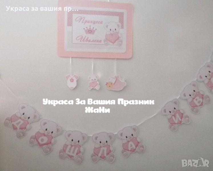 Украса за посрещане на новородено бебе у дома в розово → Обява 28352874