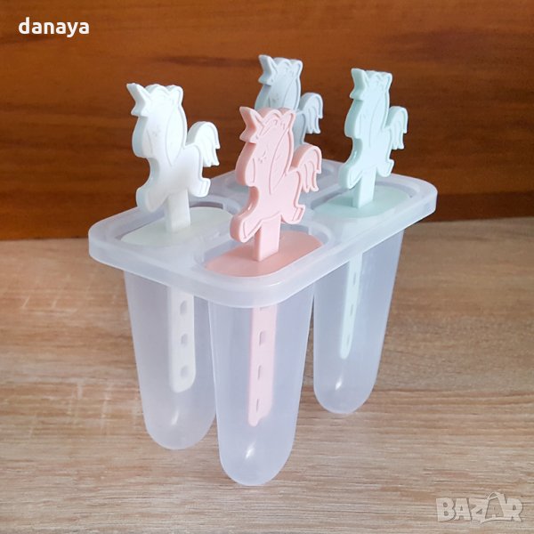 Пластмасови формички за домашен сладолед на клечка Кончета. Формата има 4 гнезда за приготвяне на 4 сладоледа едновременно. Идеални за приготвяне на вкусен и здравословен домашен сладолед Ескимо. Децата обожават ледени близалки! Формите са идеални за летните горещи дни. Супер лесни за употреба - просто напълнете формите с любимия разбит компот, плодов сок, фреш или млечен шейк, оставете за 2-3 часа във фризера и вече имате вкусен домашен сладолед!