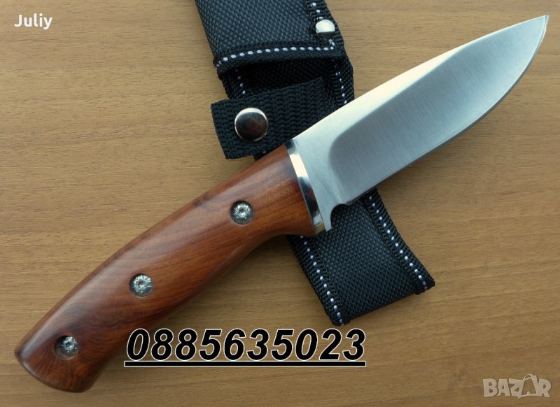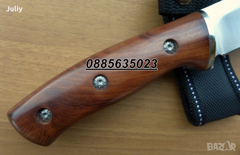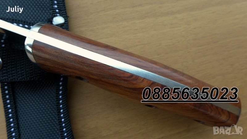 Изключително красив,с изчистени форми, острие дебело 4 мм, дължина 23,5 см и добре полирана дървена дръжка.