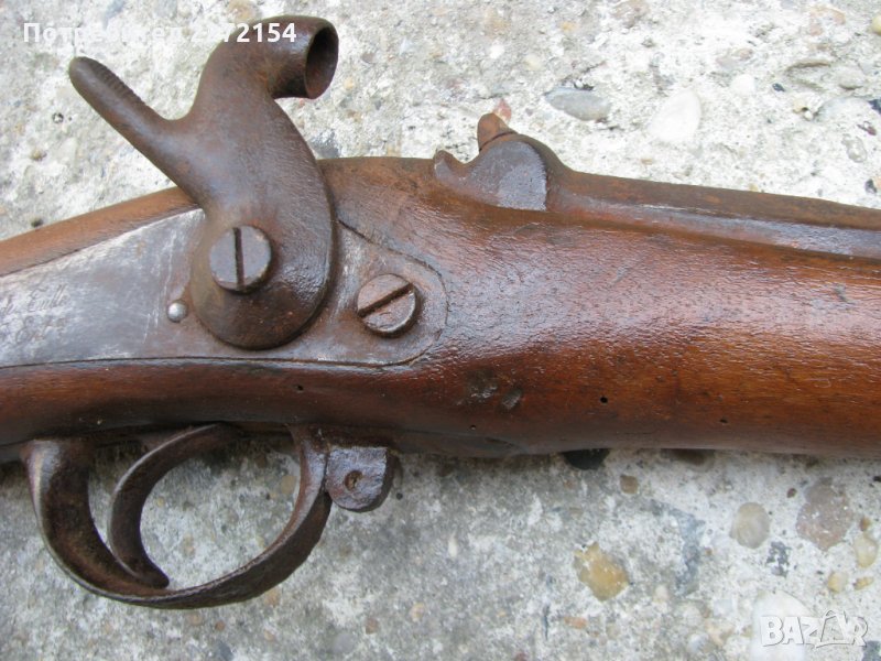 Произведена във френски военен завод.Механизмът и е със много силна пружина,винаги задържа на двете положения и като се натисне спусъка щрака звучно.Пистонът не е подбит и е чист.Цевта също е чиста.По приклада няма дървояд.Обща дължина 140см,само цев е 110см.Има мушка и мерник,липсва само шомпола и затилъка. На тази цена се продава се само с лично предаване в Русе.