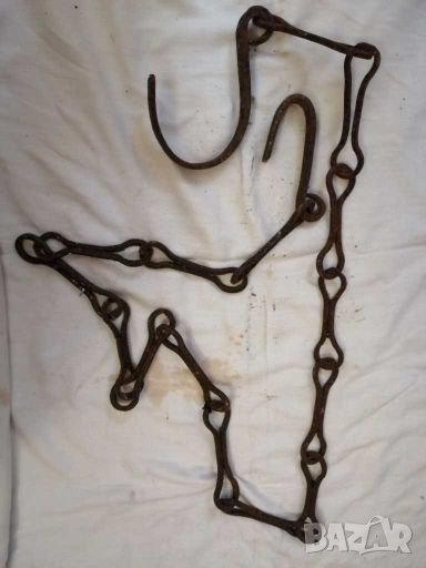 Стар кован синджир за огнище. Синджира е от края на 19 век от трънско. Синът ми го донесе от разпадащата ни се керпичена вила от трънско, дълъг е 2 метра, не е почистван. Къщата е строена през средата на 19 век. Няма забележки.