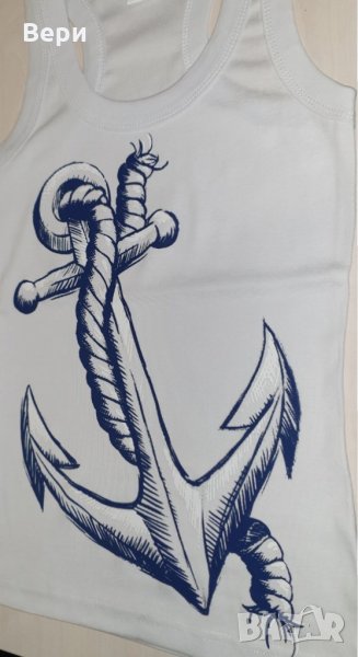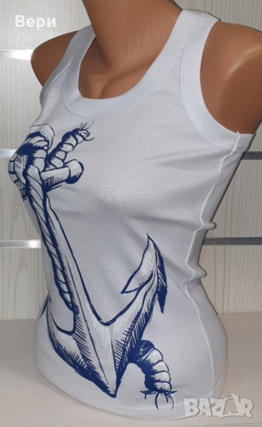Нов дамски бял потник с трансферен печат Голяма котва, морски