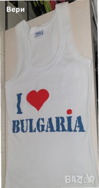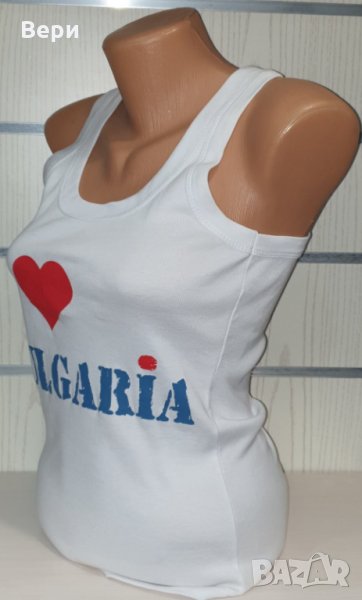 Нов дамски бял потник с трансферен печат I Love Bulgaria (Аз обичам България)