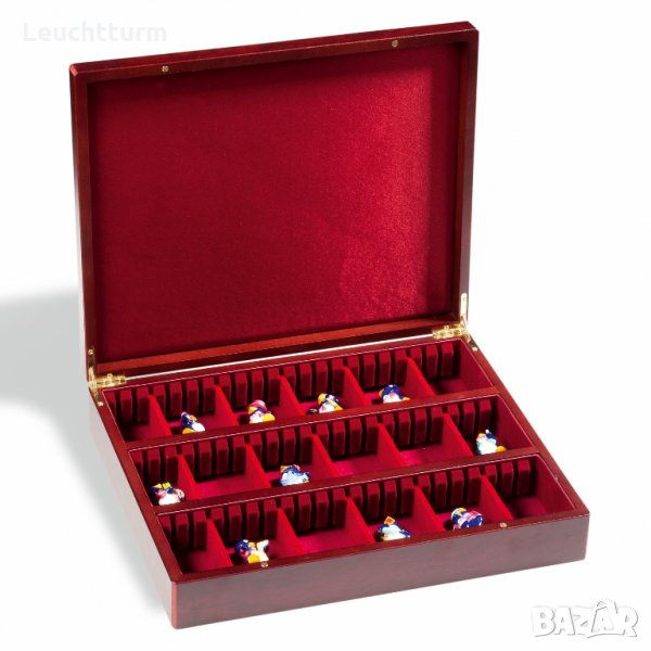 Кутията е подходящя за съхранение на монети в капсули квадрум както и за