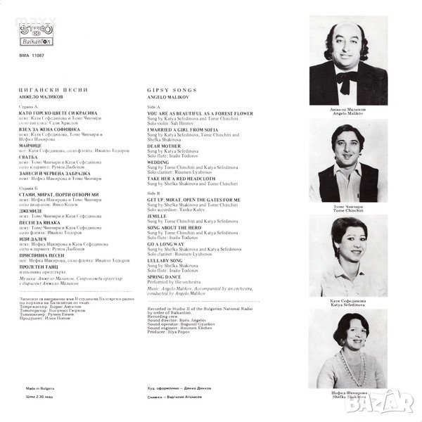 Грамофонна плоча Анжело Маликов - Цигански Песни ВМА 11087, снимка 1 - Грамофонни плочи - 28367038 Грамофонна плоча Анжело Маликов - Цигански Песни ВМА 11087, снимка 2 - Грамофонни плочи - 28367038 1/2