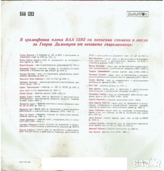Грамофонна плоча Георги Димитров. Речи, писма, статии, документи ВАА 1393