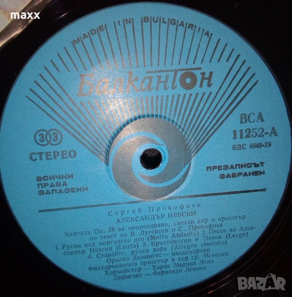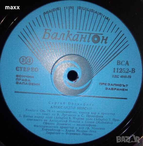 Грамофонна плоча Сергей Прокофиев. Александър Невски, кантата, оп. 78. За мецосопрано, см. хор по текст Владимир Луговски и Сергей Прокофиев ВСА 11252