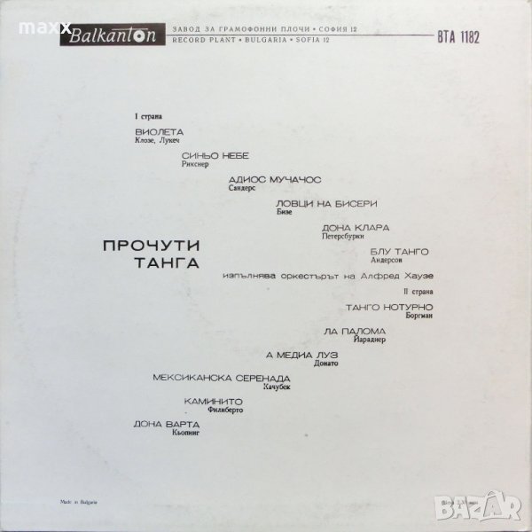 Грамофонна плоча Прочути танга ВТА 1182 Изп. орк. на Алфред Хаузе