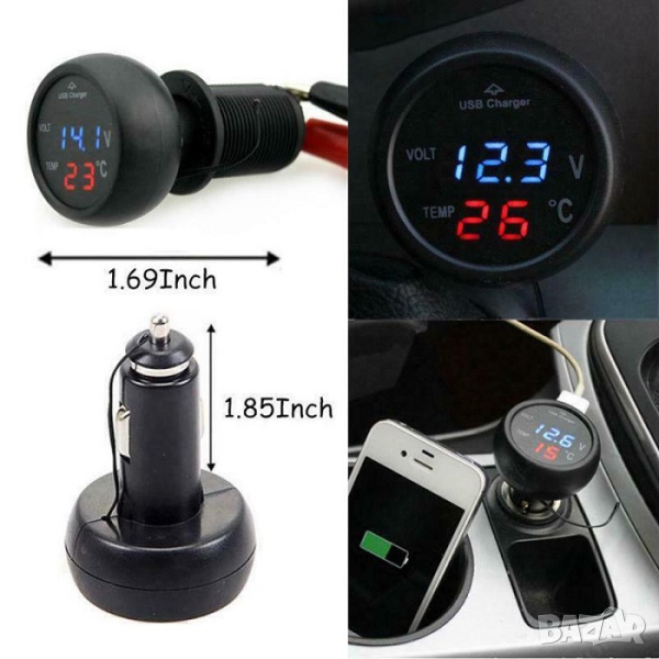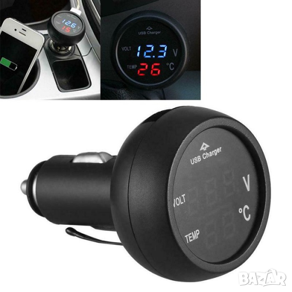 Уред 3 в 1 – волтметър, термометър и USB за автомобил в едно.
