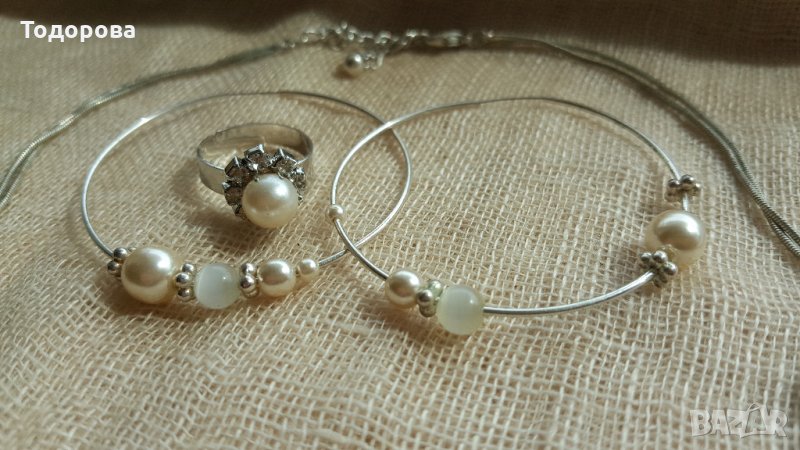 Посребрен комплект-колие,обици и пръстен → Обява 28374785